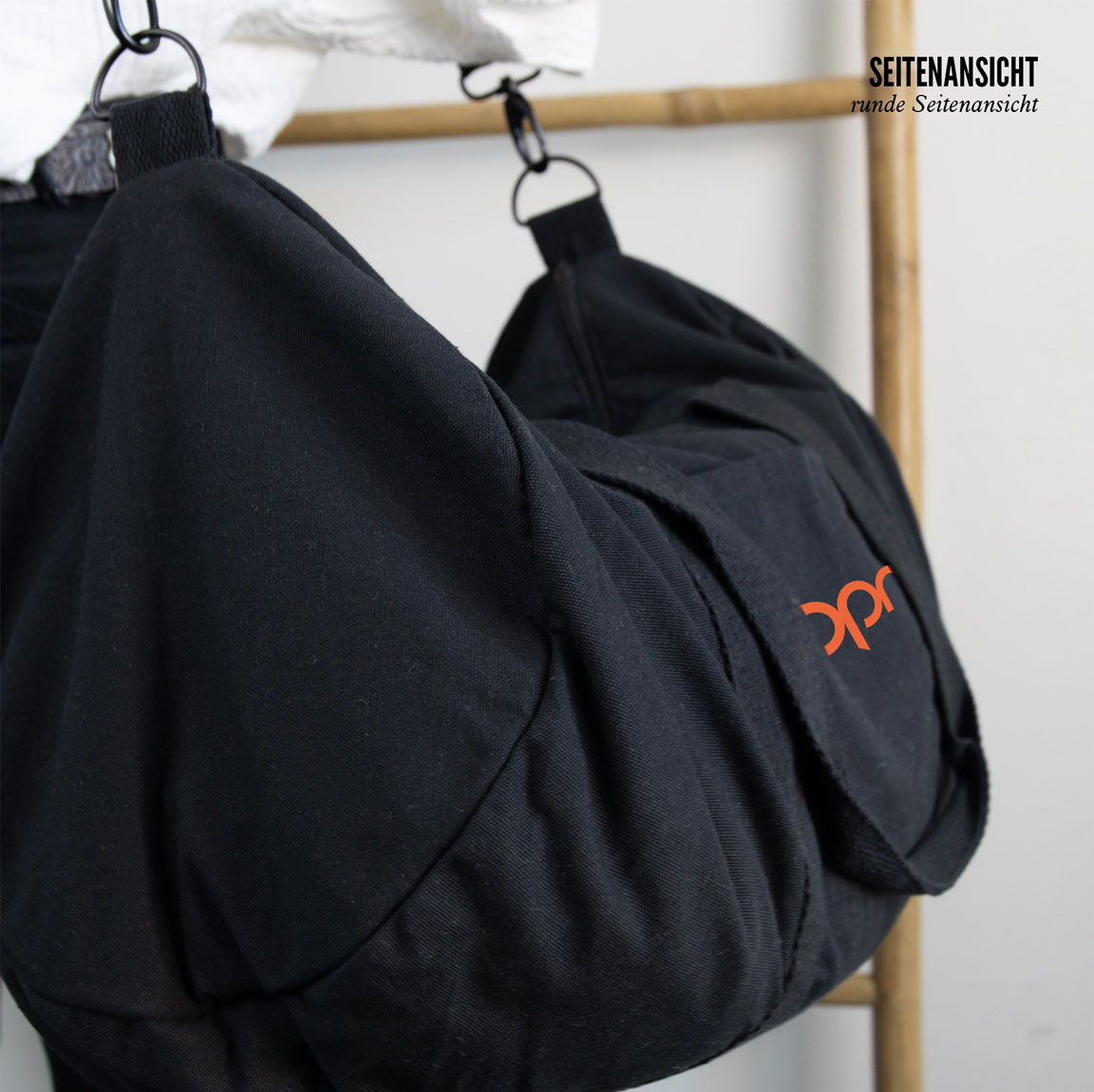 Die Canvas Bag ist vorne auf dem kleinen Seitenfach bedruckt.
