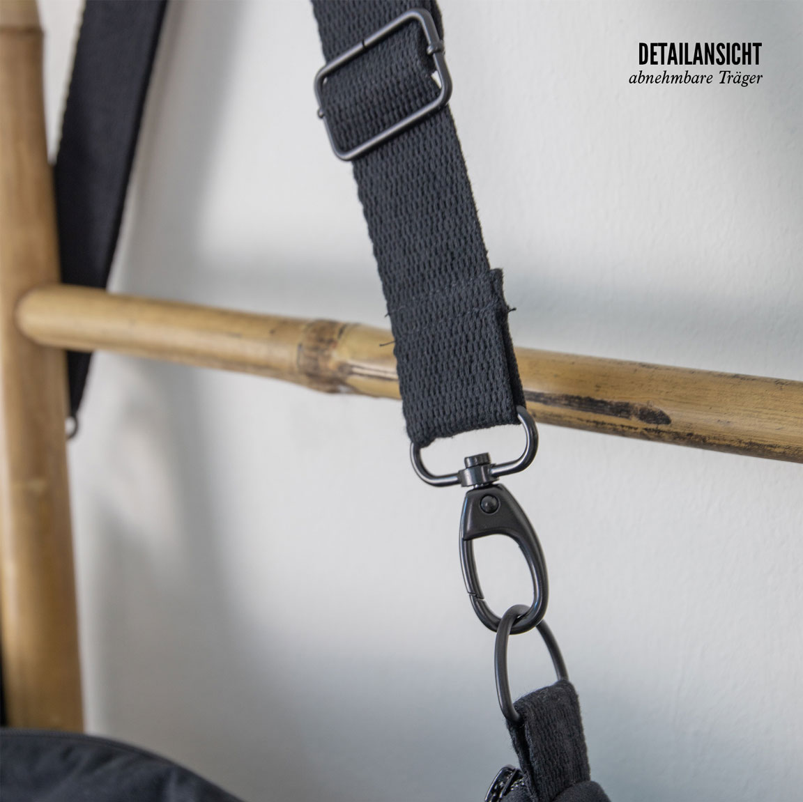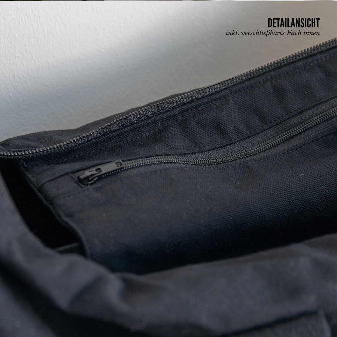 Die Canvas Bag ist vorne auf dem kleinen Seitenfach bedruckt.
