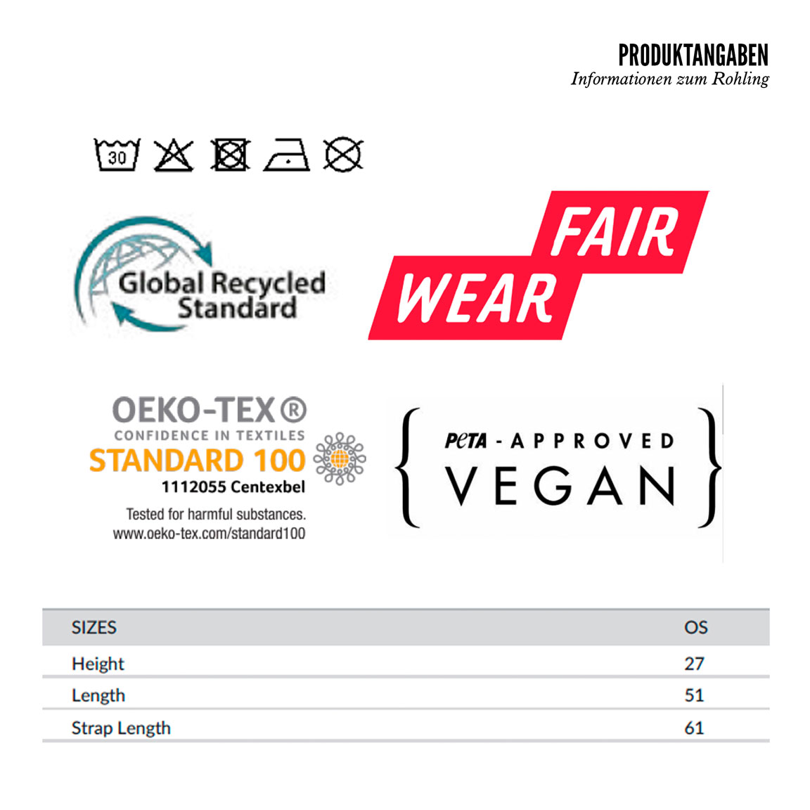 • Außenmaterial : Segeltuch , 80% Baumwolle – Recycelt , 20% Polyester – Recycelt