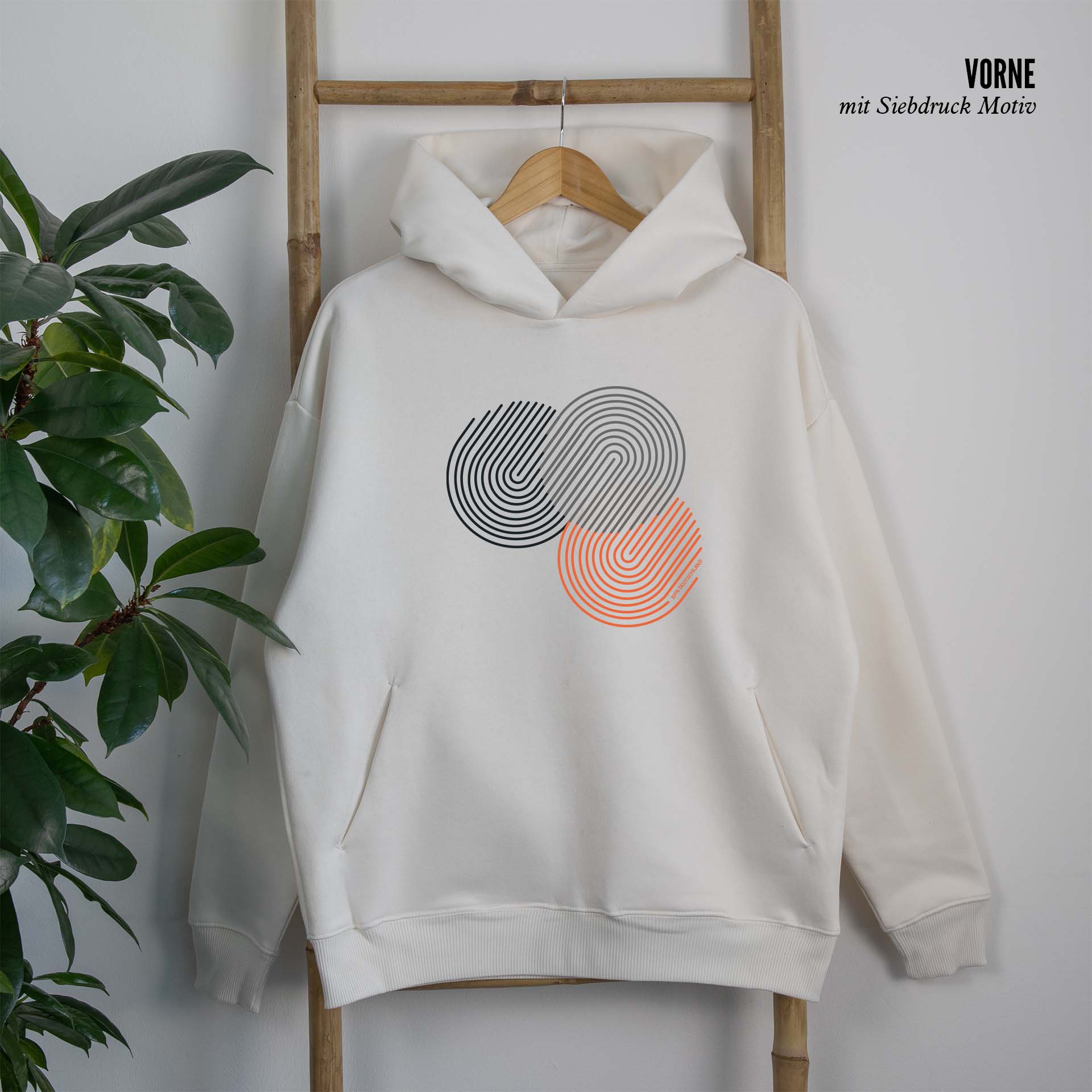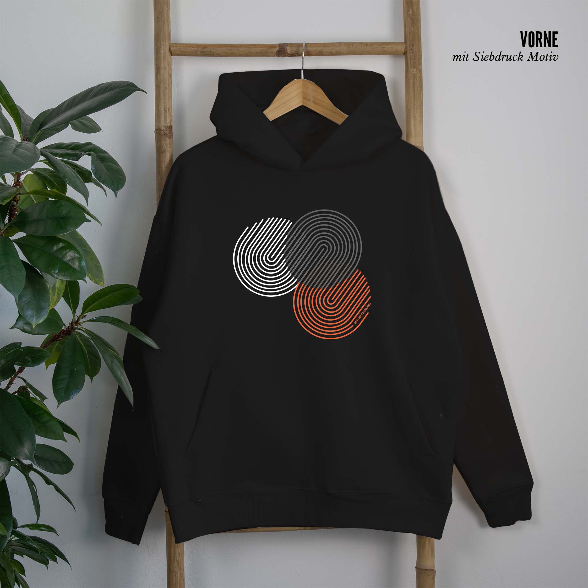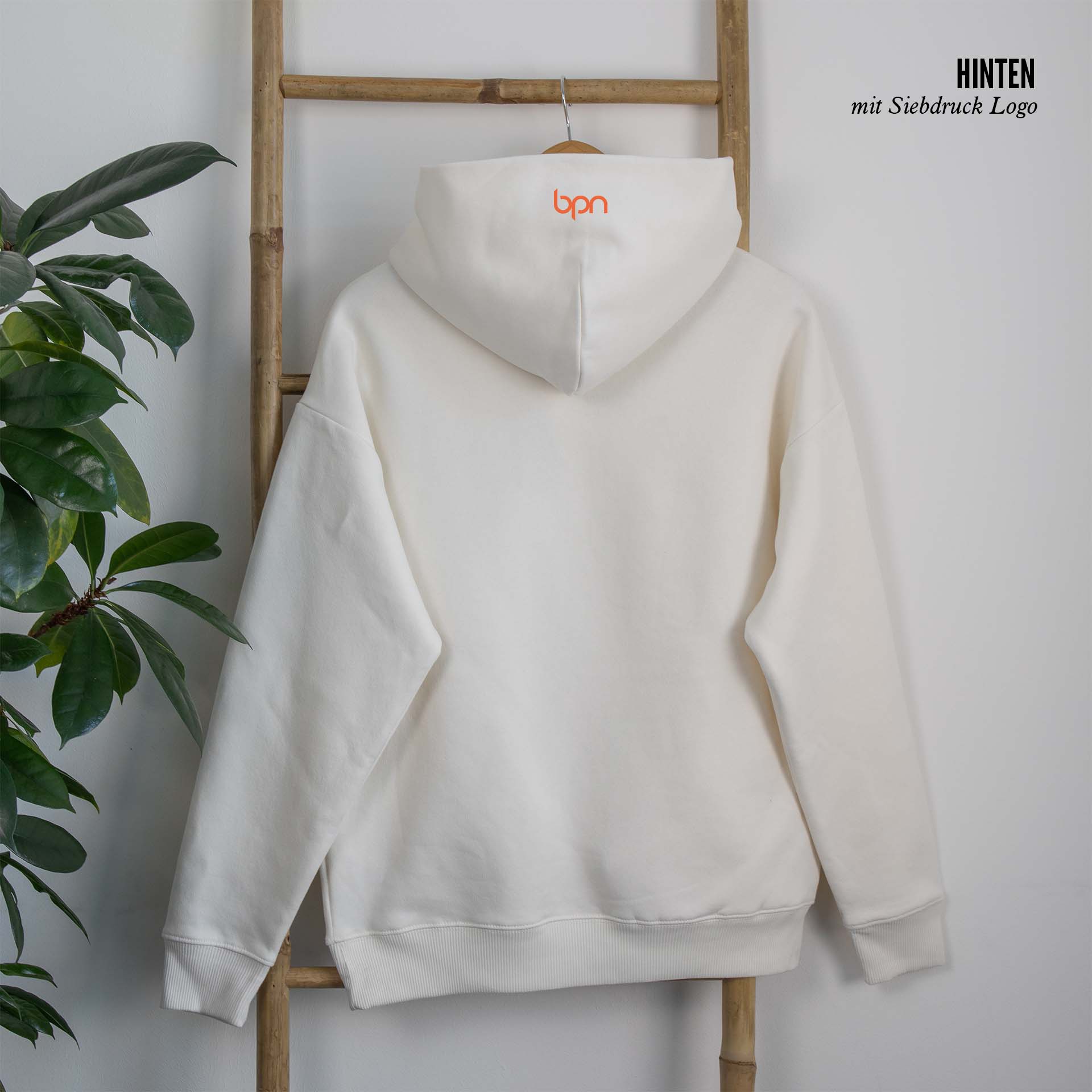 Das Hauptmotiv befindet sich vorne und das bpn Logo ist oben mittig auf dem Rücken Hoodie platziert.