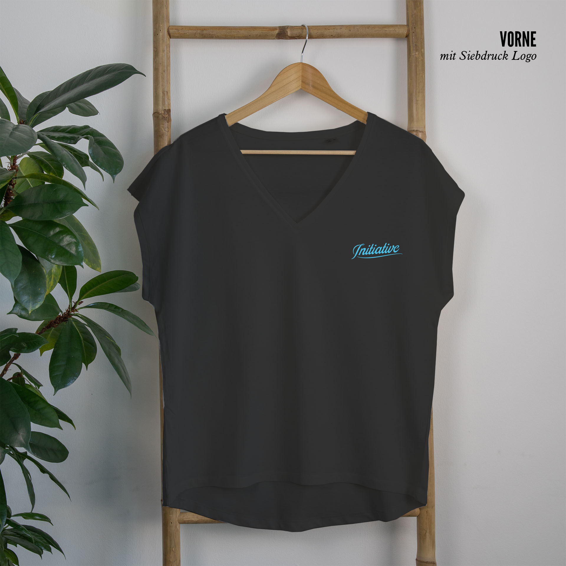 Das Logo ist vorne Herzseite auf dem T-Shirt V-Neck platziert.