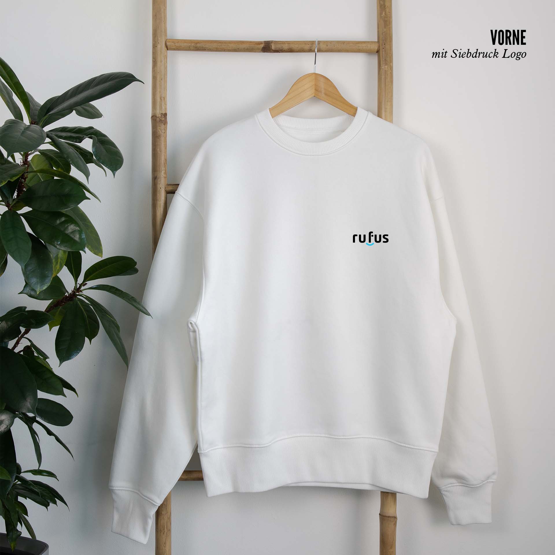 Das rufus Logo ist vorne links auf dem Pullover platziert.